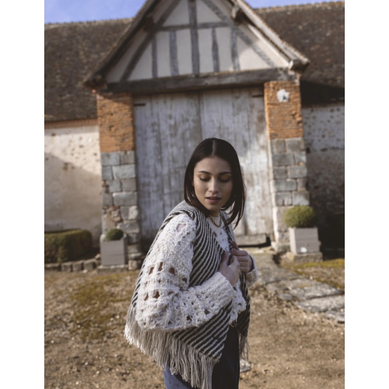 -Δίχρωμη ζακέτα με κρόσσια - Κλείσιμο με κουμπιά - 2 τσέπες -Το μοντέλο μας έχει ύψος 1,74 ..