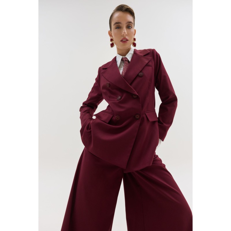Retro blazer Μπορντό χρώμα Printed φόδρα με μικρά τριαντάφυλλα Έντονος γιακάς και βάτες Σταυ..