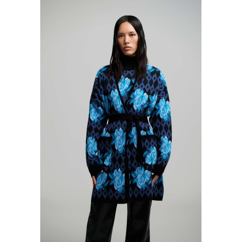 Πλεκτή ζακέτα Σχέδιο jacquard με τριαντάφυλλα Μονόχρωμο κόκκινο Long length Φαρδύ - boxy fit..