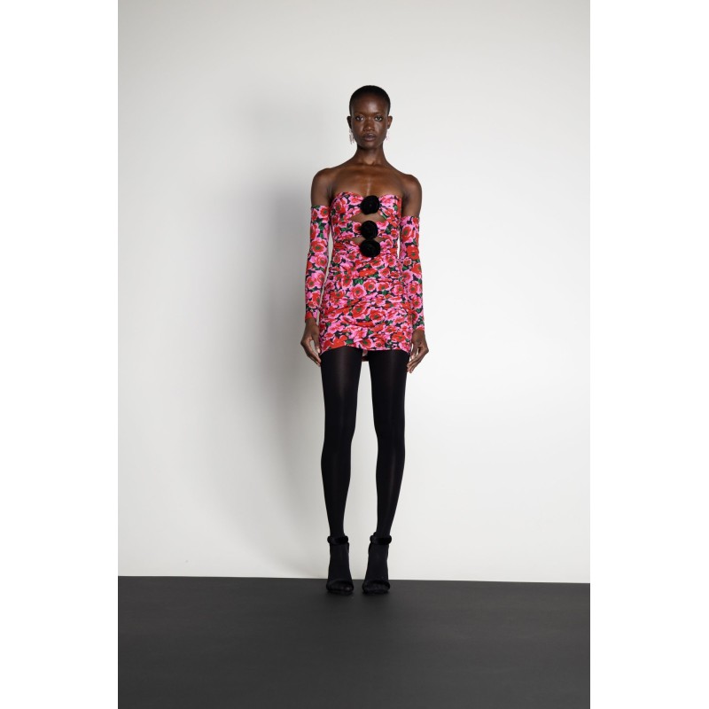 95% Pol 5% El Strapless Mini Dress with Front Cuts Detachable Flowers and Sleeves Pink F..