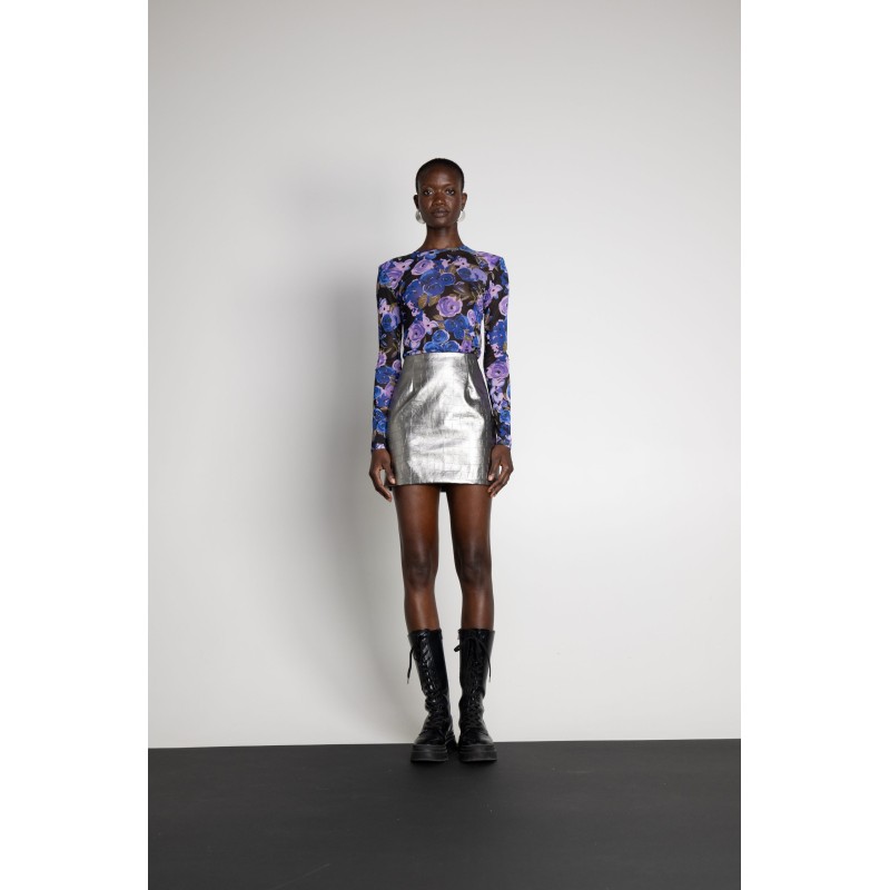 100% Pol Mini Skirt Silver Croco Texture Dry Clean According To Instructions On Care Label M..