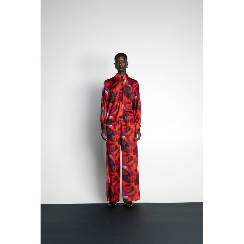 62% Rec Post Consumer 38% Virgin Pol Wide Pants Red Floral Handwash / Dry Clean Accordin..