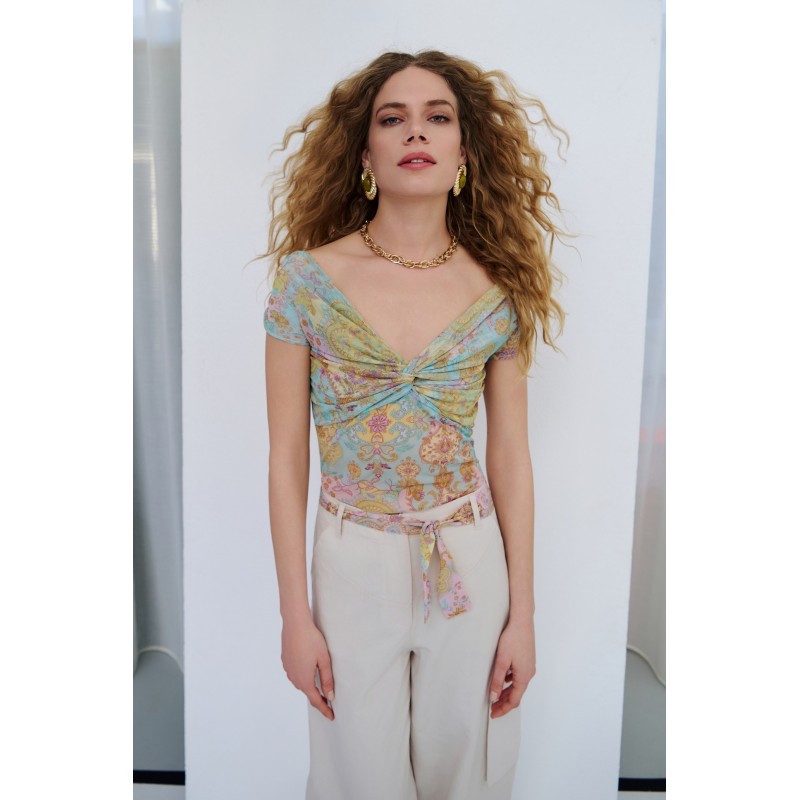 - Σετ τοπ και φούστα -Τοπ κρουαζέ με έναν ώμο με βολάν -Ψηλόμεση φούστα με βολάν..